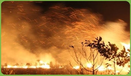 パームアブラ農園や焼畑農家からの火が森にも広がり、